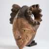 Mask comprising two heads, whose union represents a source of strength. The mask’s faces are notable for their beauty: The lips are chiseled carefully, while the nose, eyes, ears, and forehead are all finely molded. Both the lips and the entire mask are painted in shades of red, a symbol of love. A rounded protuberance on the crown of each head symbolizes power.