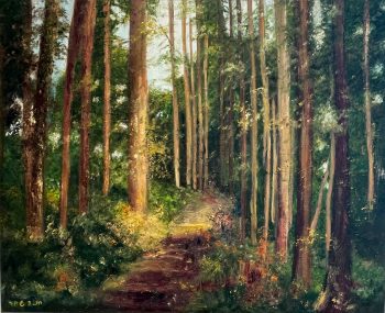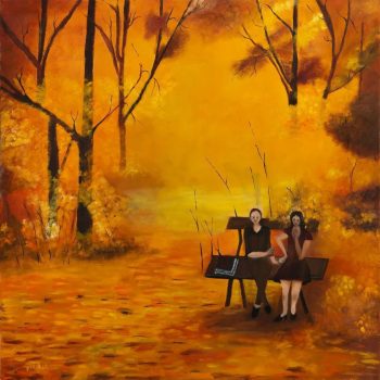 על קירות הגלריה תלויות עבודות בשמן או אקריליק על קנווס. אילו עבודות החוקרות צבעים. צבעים חמים. על בדי הקנווס בולטים כתמי צהוב עז המתמזגים עם צהוב כהה ההופך לכתום עז בדרך לאדום חזק העוטף את הצופה המרגיש כאילו הוא תחת שמש חמה ומגוננת. לפעמים הצהוב מתקדם בעזרת הכחול לעבר ירוק כהה ולעבר דימוי של יער עבות מלא בגווני ירוק מנצנצים המזמין את הצופה לצלול לתוכו.