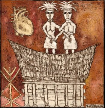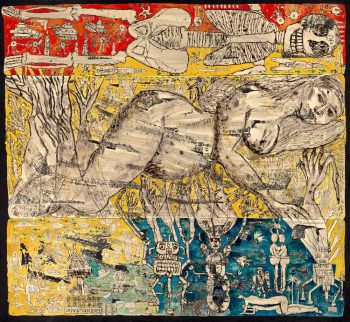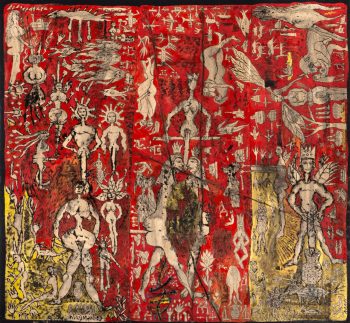 דימויים בהשראת מסכות ופסלים שבטיים מכל העולם מקבלים ביטוי על גליונות של נייר זפת עמוסים בפרטי פרטים. הנושאים והסצנות הם מהנפש, מהגוף, ומתוכם החוצה. דמויות אנוש ערומות עם אברי המין גדולים ומודגשים מזדקרים בחלל הציורי, דמויות של חייזרים ושל רובוטים ספק אנושיים ספק מכונות, חיות אמיתיות ודמיוניות, חרקים אימתניים, אלים ואילות מהמיתולוגיות וממיתוסים עתיקים, עצים וצמחים וטבע פראי הנמצא בכל מקום על הנייר.